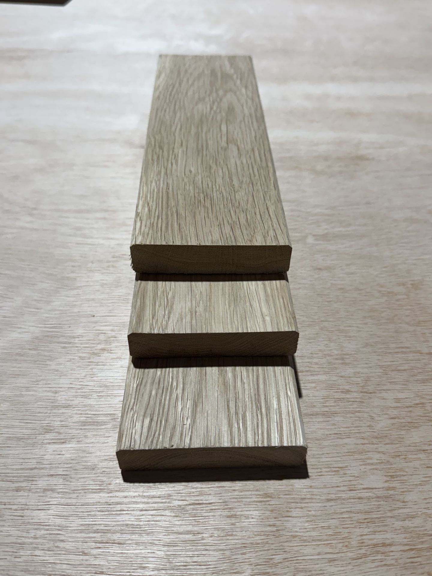 Oak timber boards feature distinct grain patterns that add natural beauty and character to the wood. The grain can be straight, wavy, or have attractive swirls and knots, which contribute to the visual appeal of the finished product.