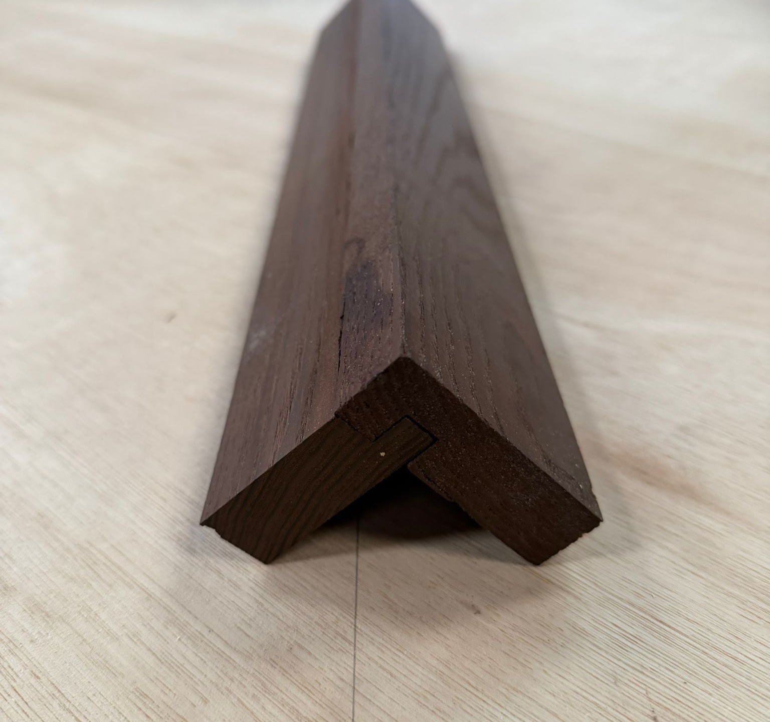 Thermo Ash corner trim, Thermo Ash L shape corner, thermally modified ash cladding trim, external timber corner profile, ash cladding accessories UK.