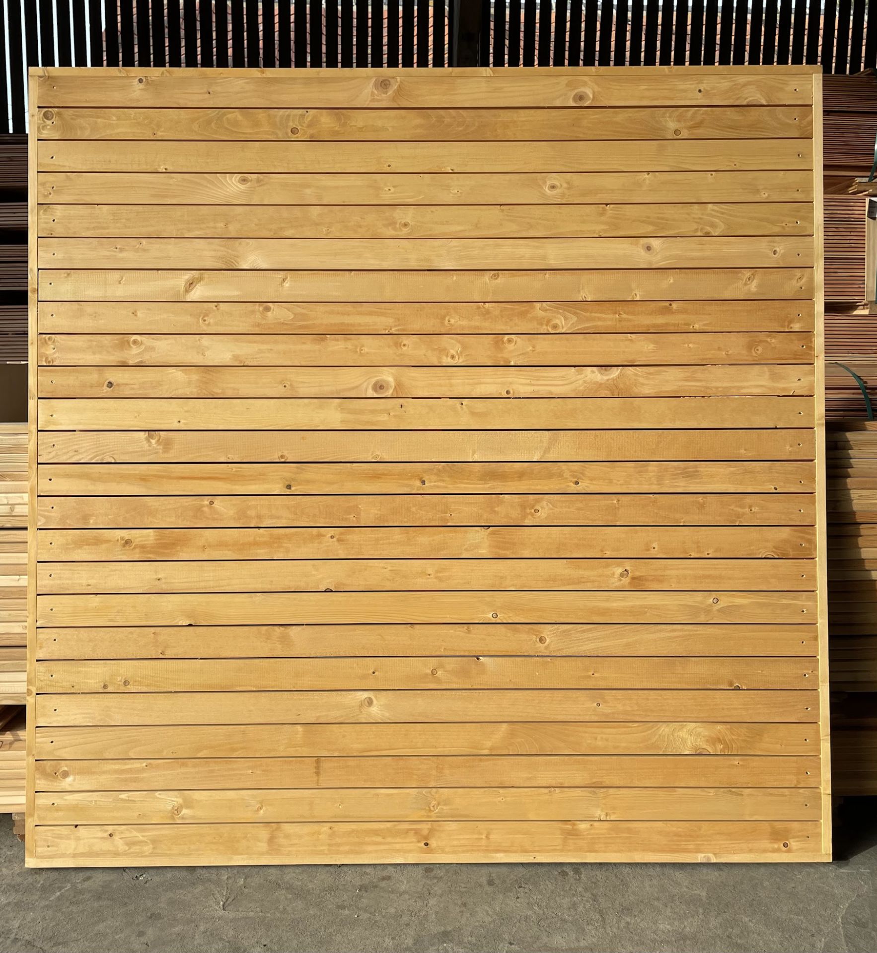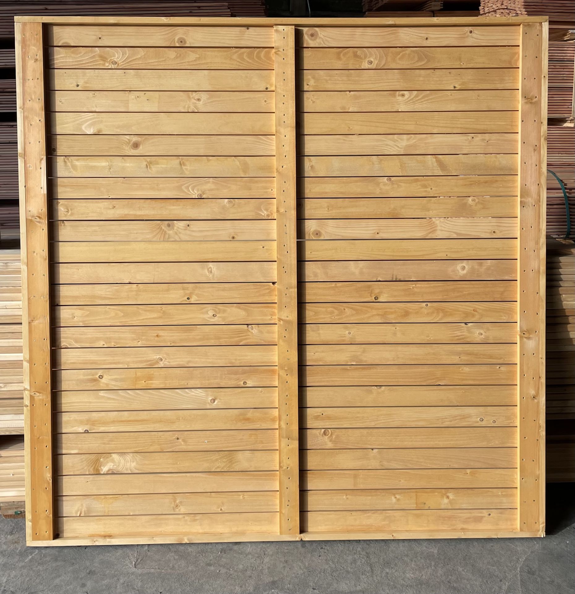 Treated Fence Panels – Golden Brown are a type of fencing commonly used in residential and commercial properties for privacy, security, and aesthetic purposes. These panels are constructed using horizontal wooden slats that are tightly spaced to create a solid and visually appealing barrier.